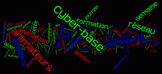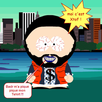 Ci dessous, deux visuels SouthPark et un visuel Wordle.net créés lors de’atelier. Il parait, d’après Christophe, qu’un des visuels me représente !!! … J’y crois pas ! 😉
